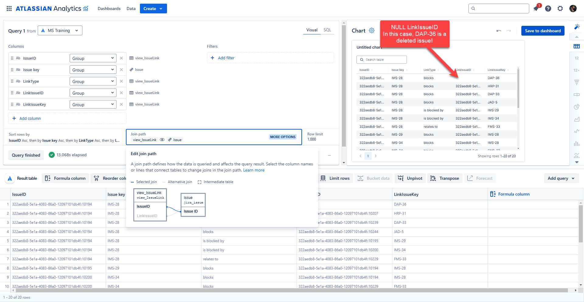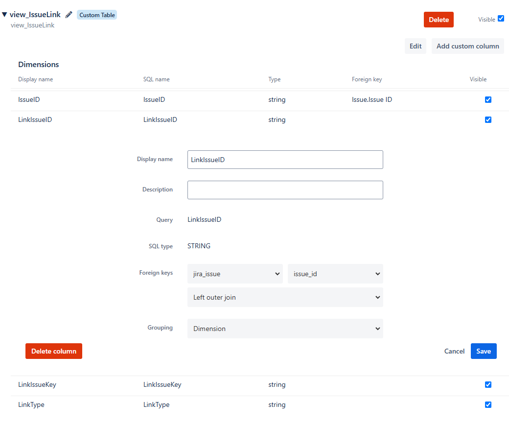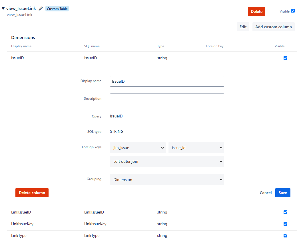- Check the Join Path: This helps confirm that the 'view_IssueLink' is correctly linked to the Issue table using the desired column (in this case, IssueID = Issue ID).