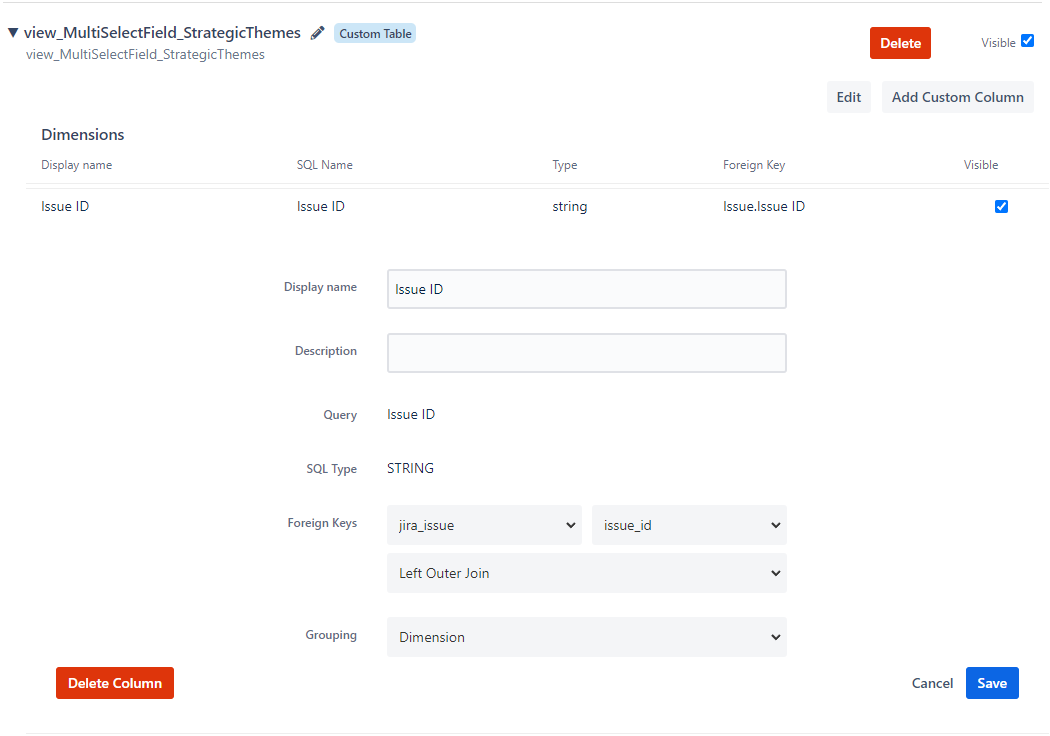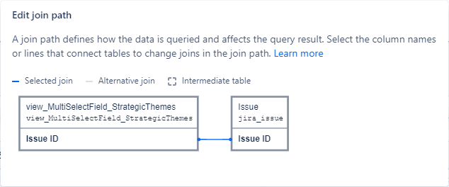 - Check the Join Path: This helps confirm that the 'view_MultiSelectField_StrategicThemes' is correctly joining the Issue table.